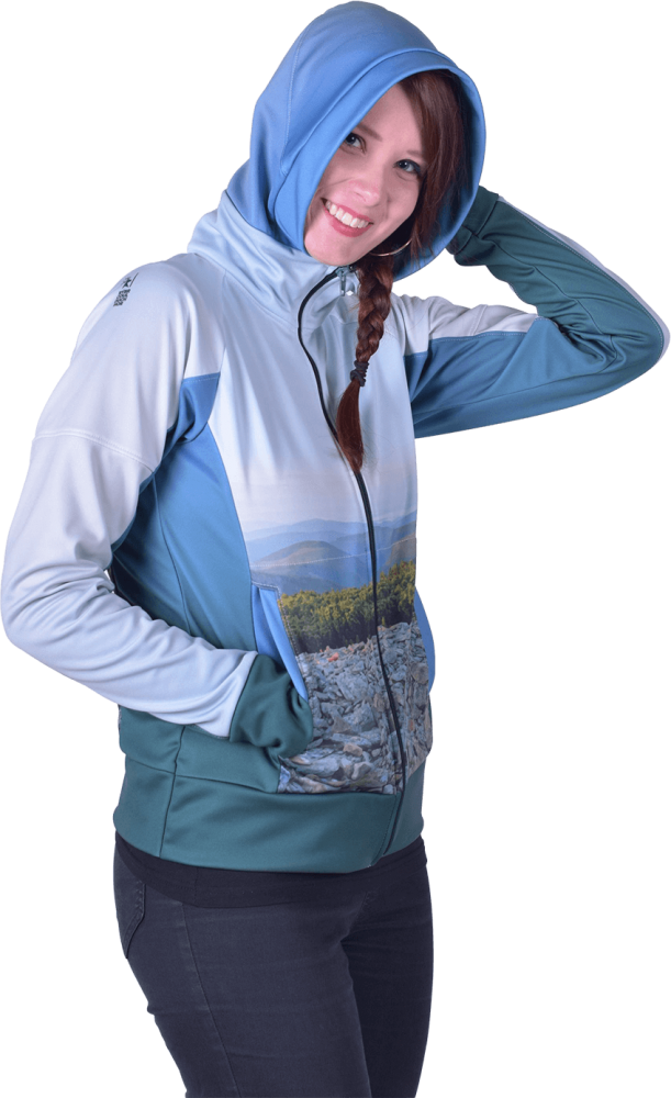 Dámská vypasovaná mikina "Hřebenovka" z kolekce Rýbrcoul s moderním sublimačním potiskem. Na tento model jsem použila vlastní fotografii z nočního výstupu na Sněžku za východem Slunce. Foceno v pět hodin ráno na Obřím hřebenu.
